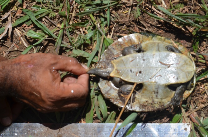 For the past three years the Githabul Rangers turtle monitoring program has helped improve our understanding of the movement and abundance of freshwater turtles in our rivers. Turtles are an important food for Githabul people and diving for them is a popular past time for all ages. The Githabul Rangers hope to determine the health of current turtle populations in areas where hunting occurs and also link this to the health of the river systems. In coming months the Githabul Rangers also hope to monitor other river species such as threatened fish species and invasive pests like the European carp which have been recently caught in Githabul rivers and can have very damaging effects on local waterways.